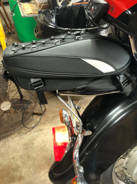 This is good expands out can put helmet in or my leather coat gloves and a few other little things at the same time.